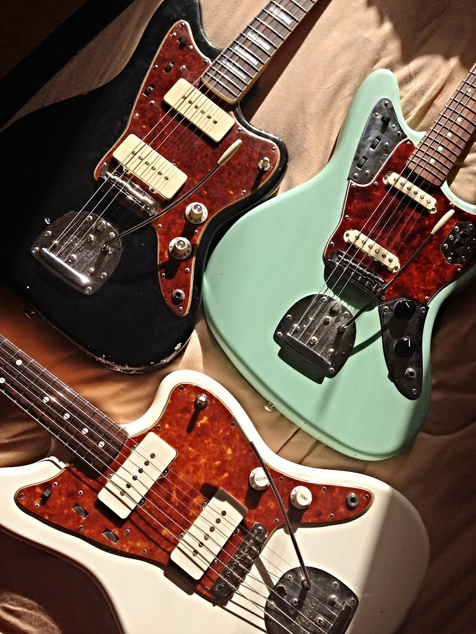 Pre-CBS style Jazzmaster custom built from a mix of brand new and pre-owned genuine Fender & premium bespoke parts:This one is a custom build I did for my wife, Christmas of 2010. Pictures are from 2013 - the wear & tear is natural from actual playing...not faux-wear.The run-down:-Brilliant Burgundy Mist All Nitrocellulose finish by offsetguitar.com member AWSchmit. Has a really vintagey vibe going on that just amazes me everytime i look at it.-Wildwood Manufacturing Light Alder Body-Musikraft JM Neck: Maple/Rosewood, Thin C, 7.25" Radius, Vintage Frets, Single Acting Truss at the Heel-SD Antiquity II’s w/ 1meg Linear/Audio CTS Pots, Mojo Vitamin T Capacitors, & Luxe 22ga Colored Cloth Wiring, Switchcraft Switch & Toggle-AVRI Hardware: Trem + Arm, Tort Guard, Aged White Covers & Knobs, Black Rollers-1965 Fender RI Mustang Bridge-White Button Kluson Deluxe Tuners-2 Veneer shims in the neck for better action & overall resonanceNot only is it a looker, but it feels and plays incredibly! In fact, after all is said and done, I’m jealous it’s not mine!